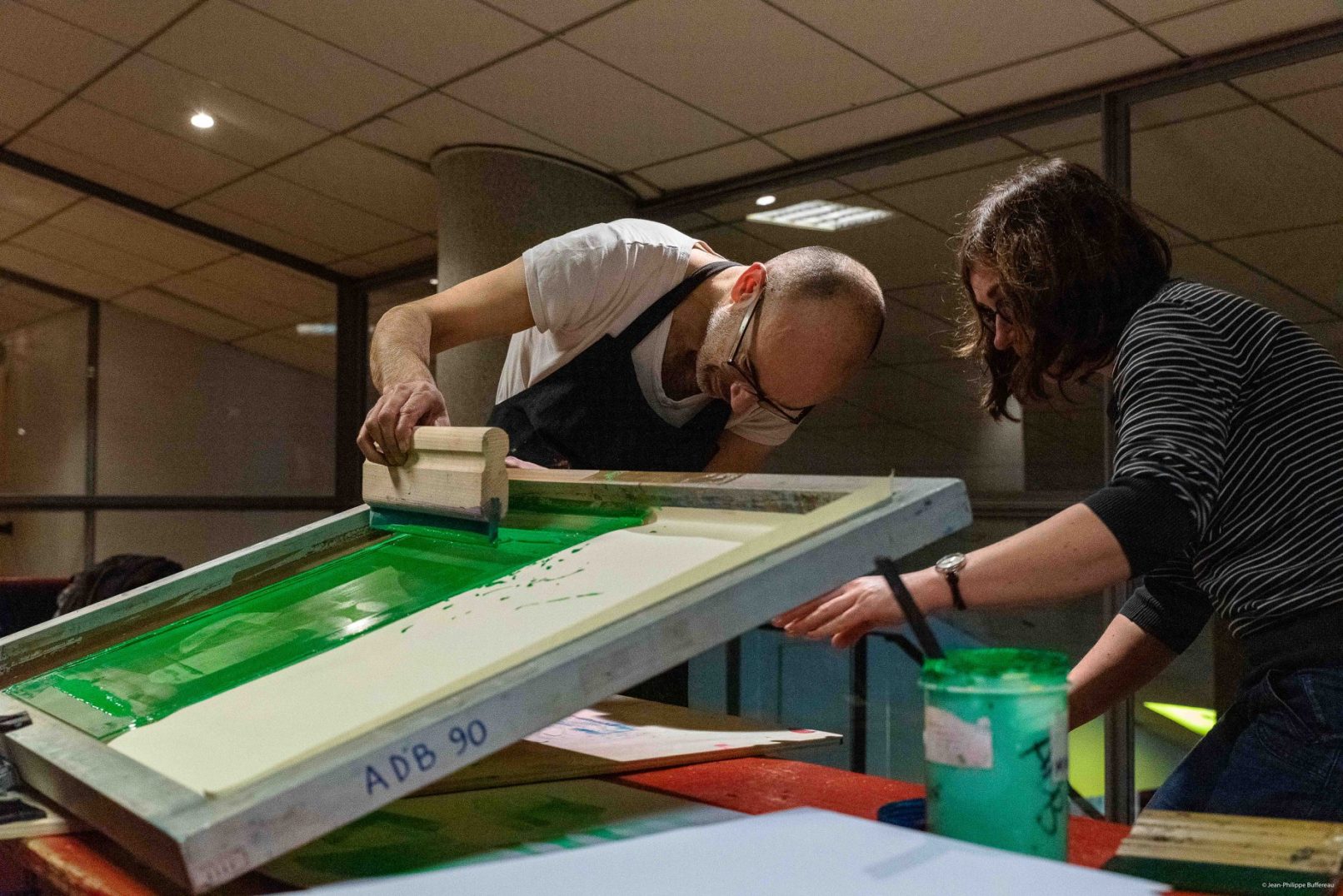 De l’initiation, de la découverte de l’impression textile et de la composition d’affiche avec des élèves de seconde.