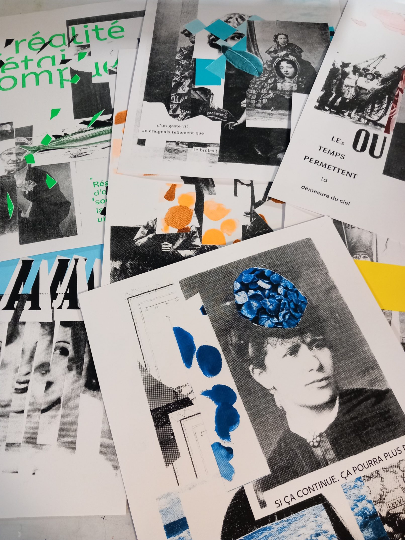 Cette série d’affiches a été exposée à la médiathèque Lagirafe du 31 mai au 10 juin 2023 avec une sélection de collages et de textes conçus lors des ateliers réalisés au printemps 2023 au collège. La création de l’ensemble de ces éléments s’est faite autour d’une réflexion et de recherches ayant pour sujet les femmes bretonnes célèbres (autrices, artistes, scientifiques, femmes politiques, personnalités engagées…).