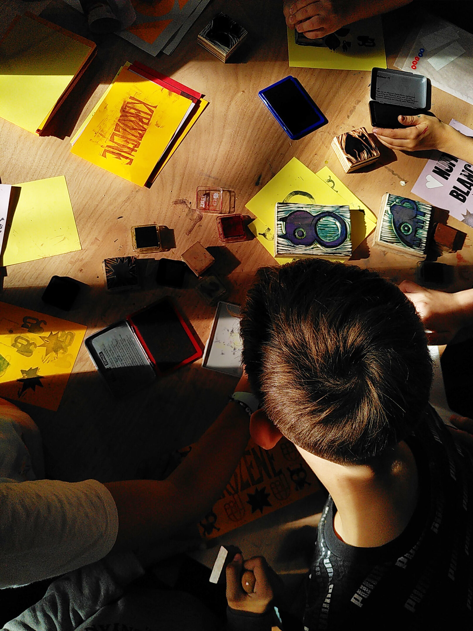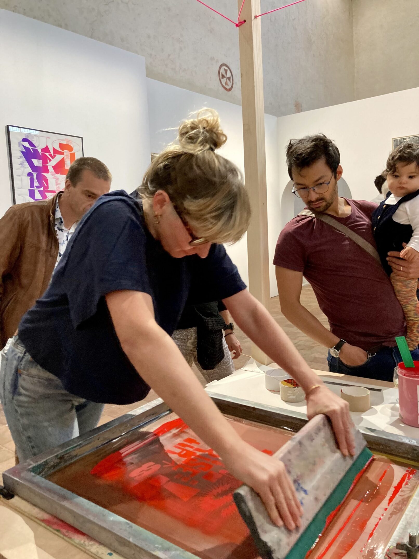 Il propose à ses participants de composer des œuvres suivant cinq ateliers et de repartir avec les réalisations. Les invités sont amenés à expérimenter différentes techniques d’impressions à chaque atelier.