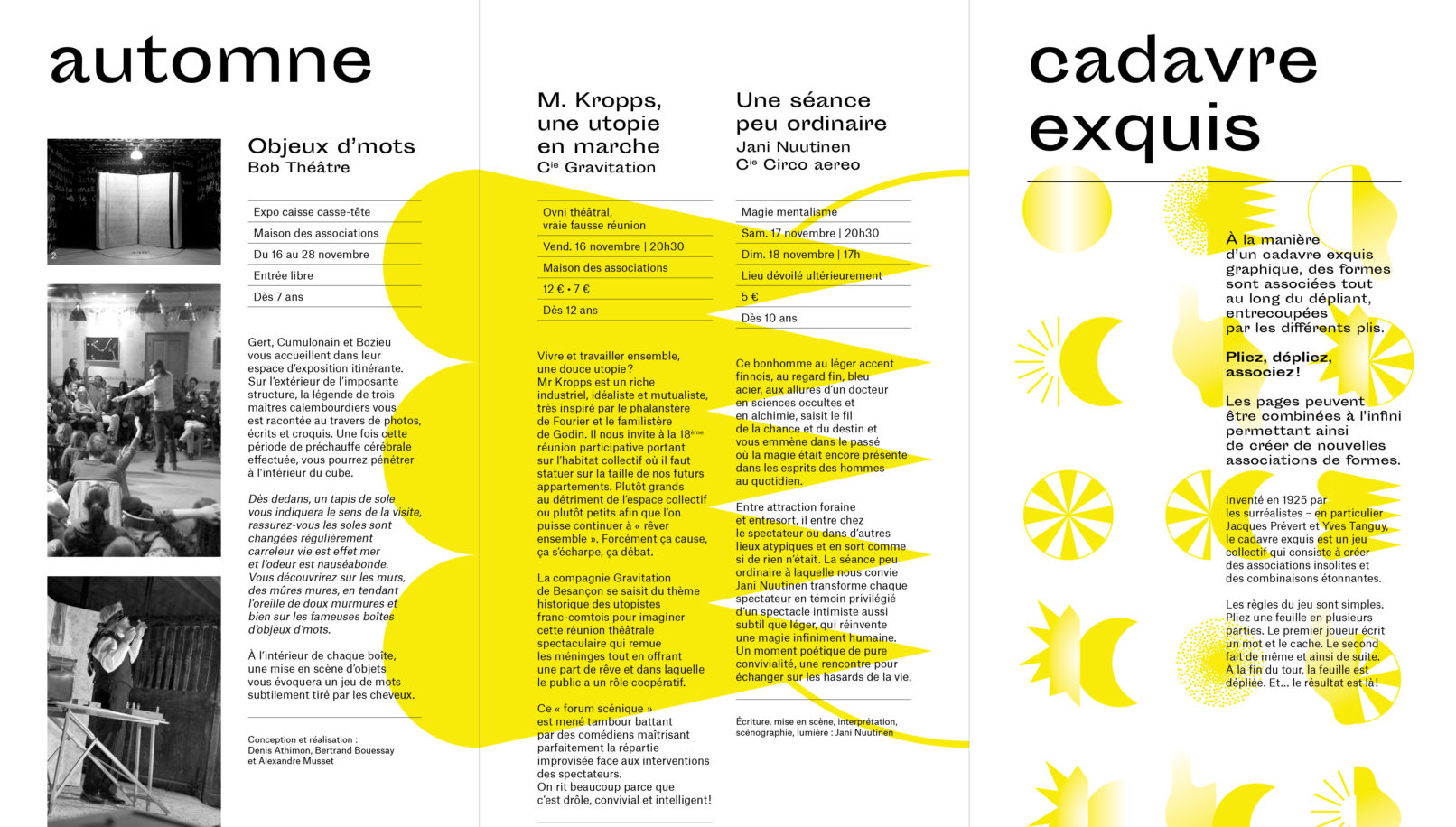 Identité – dépliants et flyers de la saison culturelle 2018-19 de la ville d’Indre.