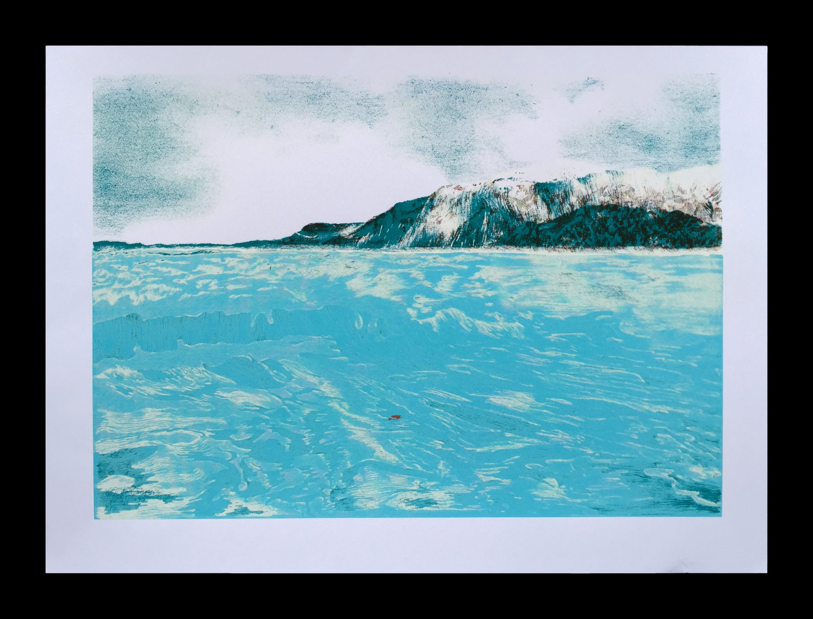 Poster Inuit. paysage 02–Sérigraphie 7 passagesFormat 50*70 cmPapier Olin smooth crème 250g/m²Imprimé au Marché Noir, juillet 2019–Par anna boulanger