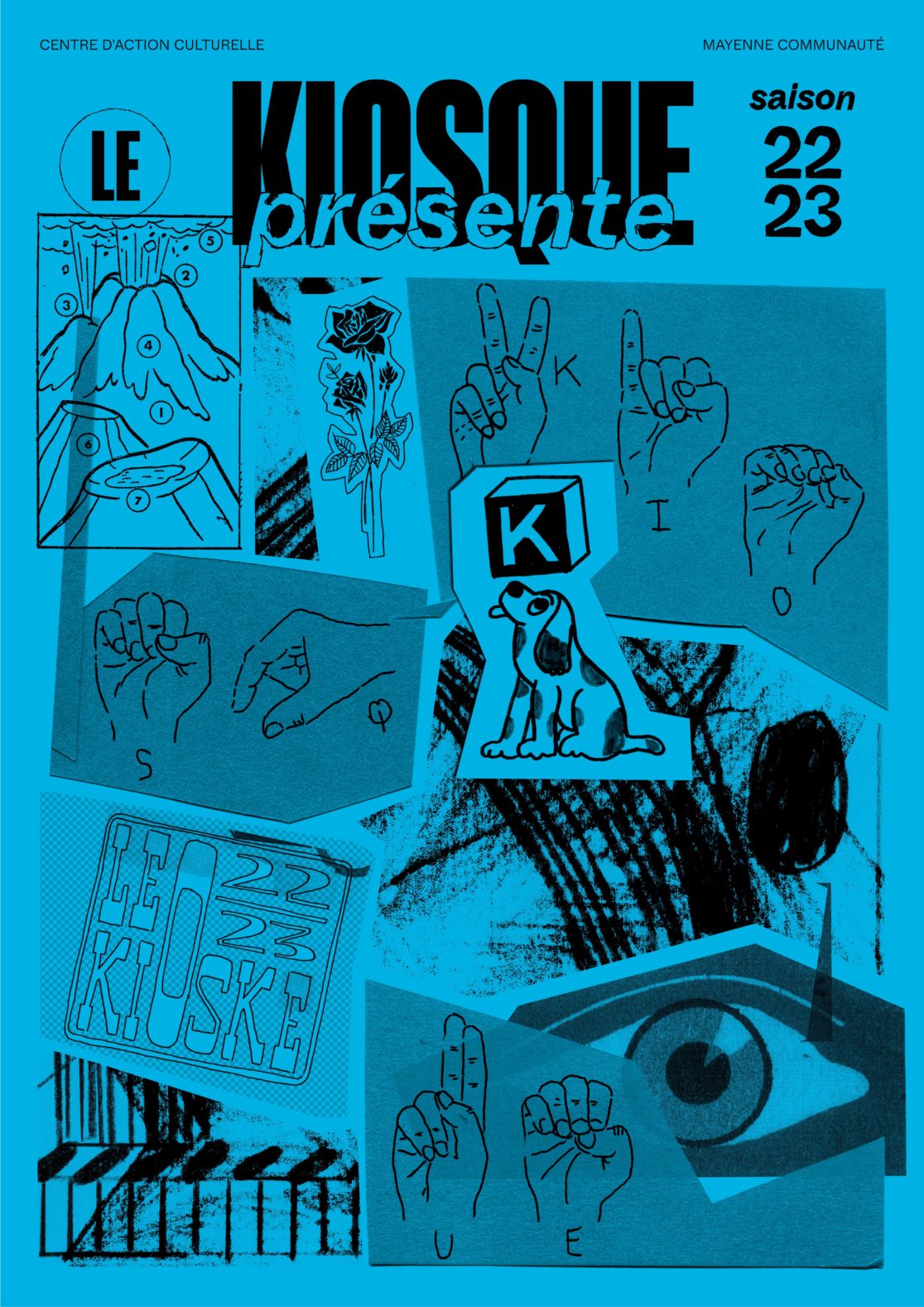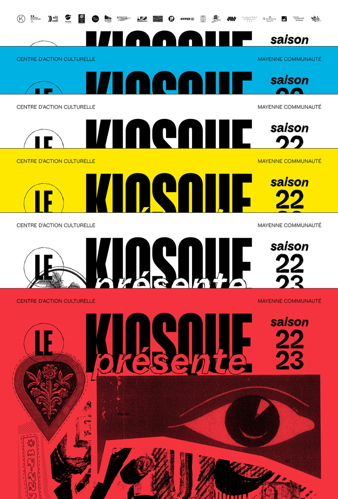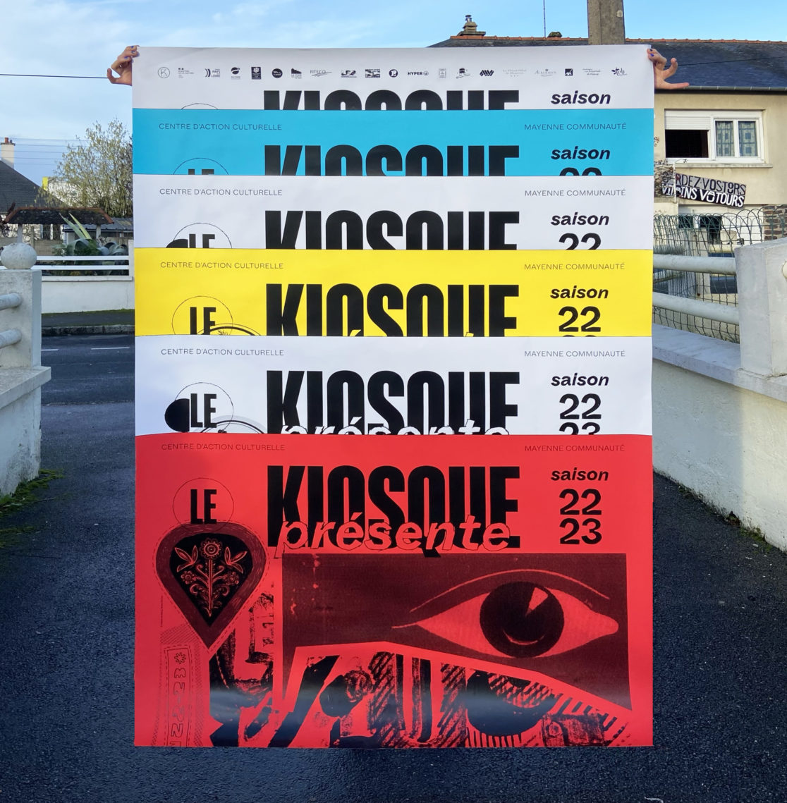 Par l’association d’images et de références populaires, l’identité graphique propose une aventure plastique, livre une atmosphère et un imaginaire qui raconte le Kiosque et sa saison. Il permet à chacun d’avoir sa propre lecture et met en avant l’humain et la fragilité qui le constitue.