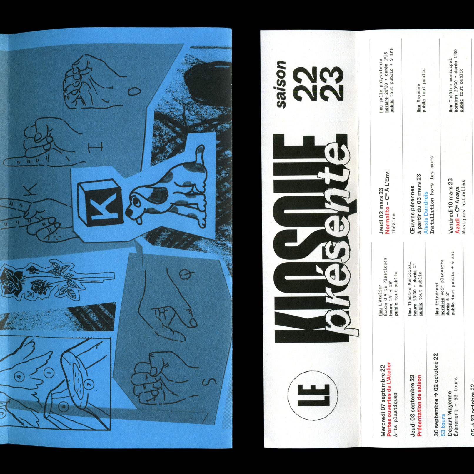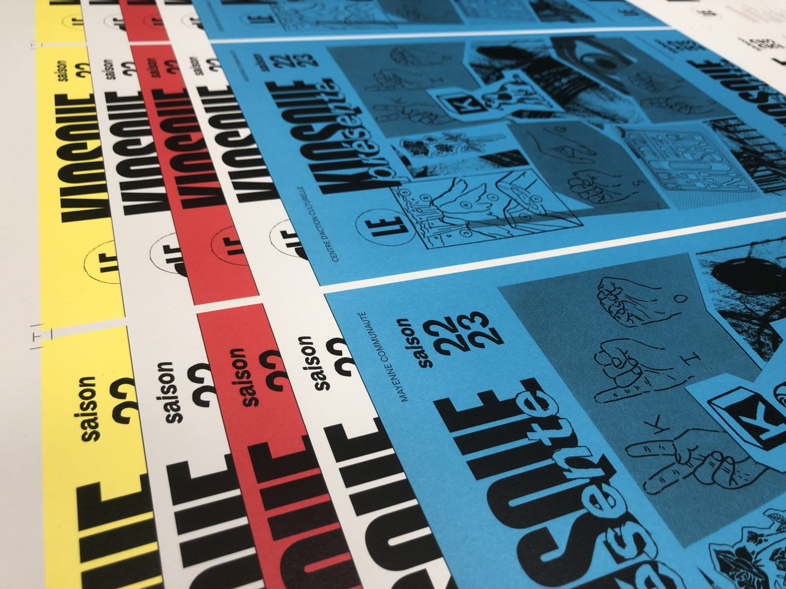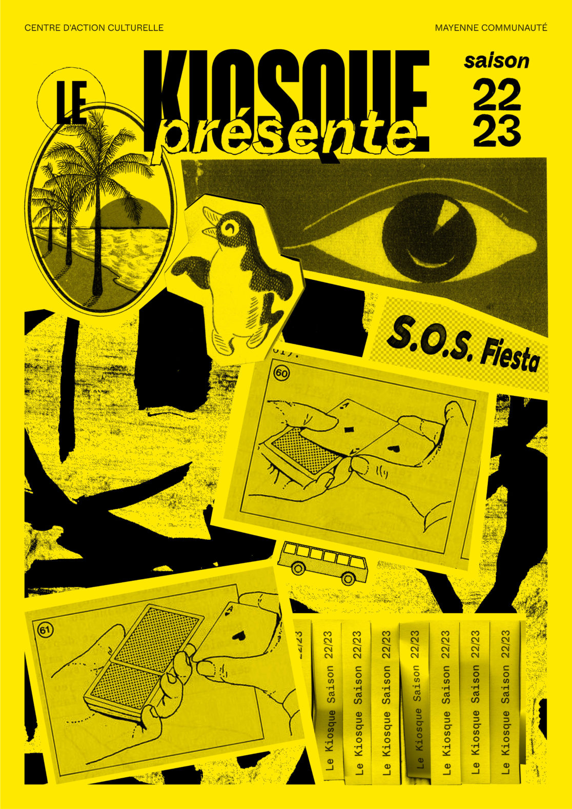 Par l’association d’images et de références populaires, l’identité graphique propose une aventure plastique, livre une atmosphère et un imaginaire qui raconte le Kiosque et sa saison. Il permet à chacun d’avoir sa propre lecture et met en avant l’humain et la fragilité qui le constitue.