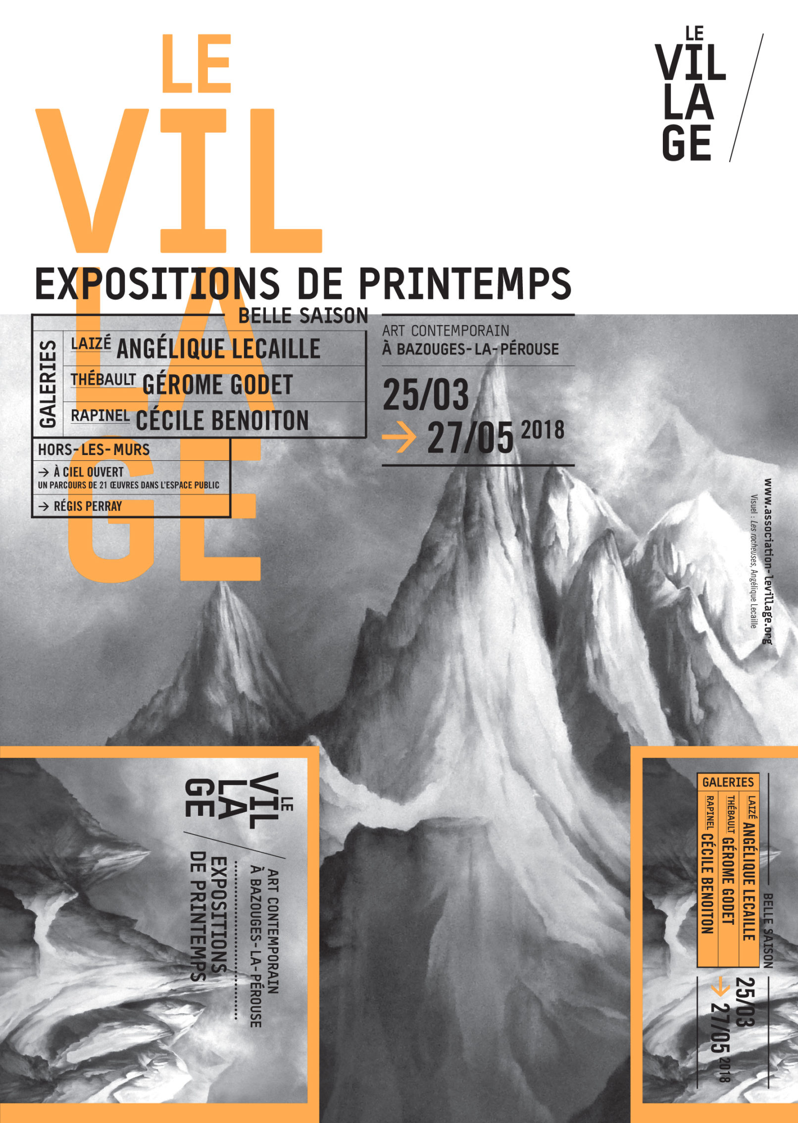 Supports de communication réalisés pour les expositions du Printemps 2018 de l’association Le Village. – Par Julien Lemière
