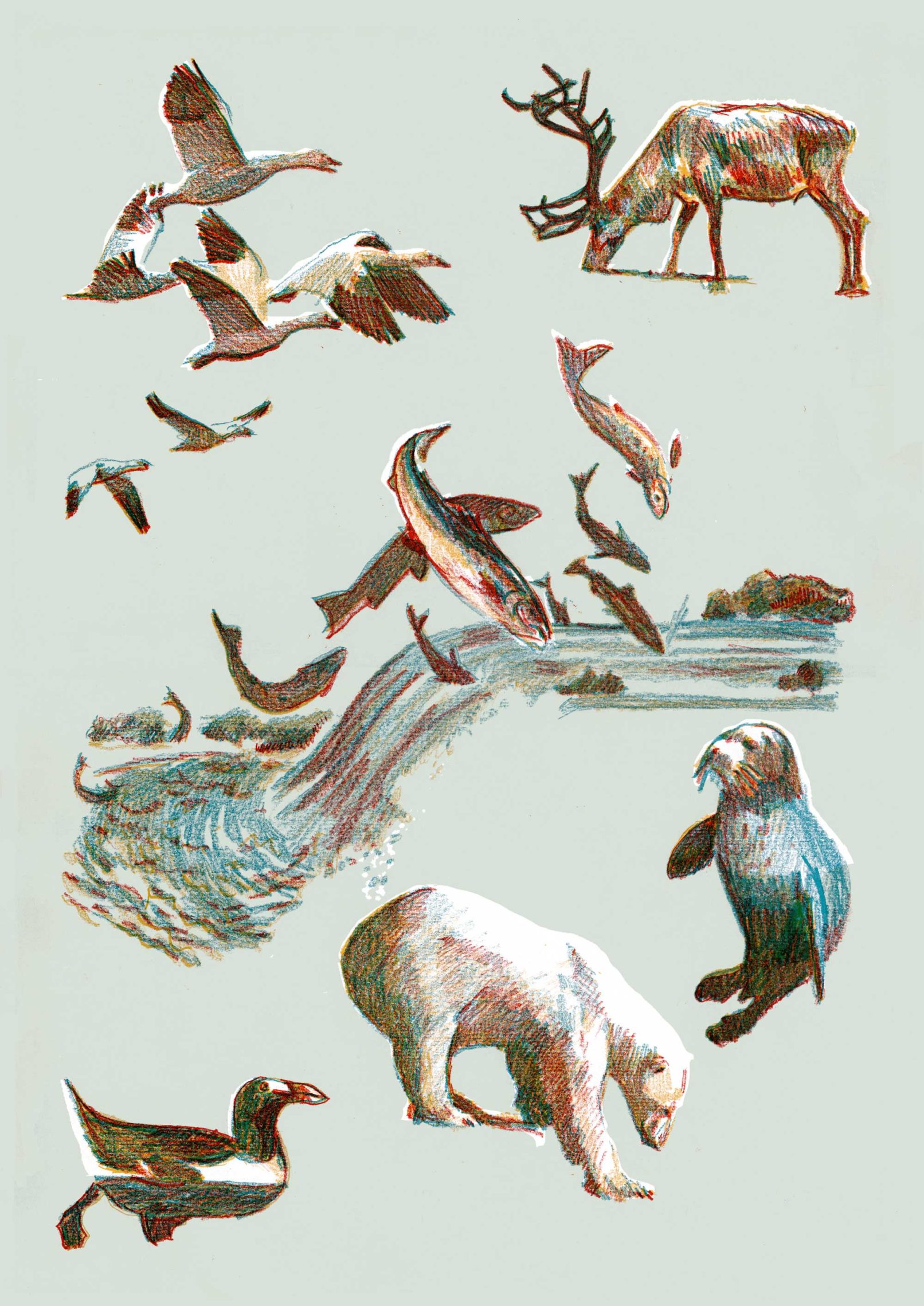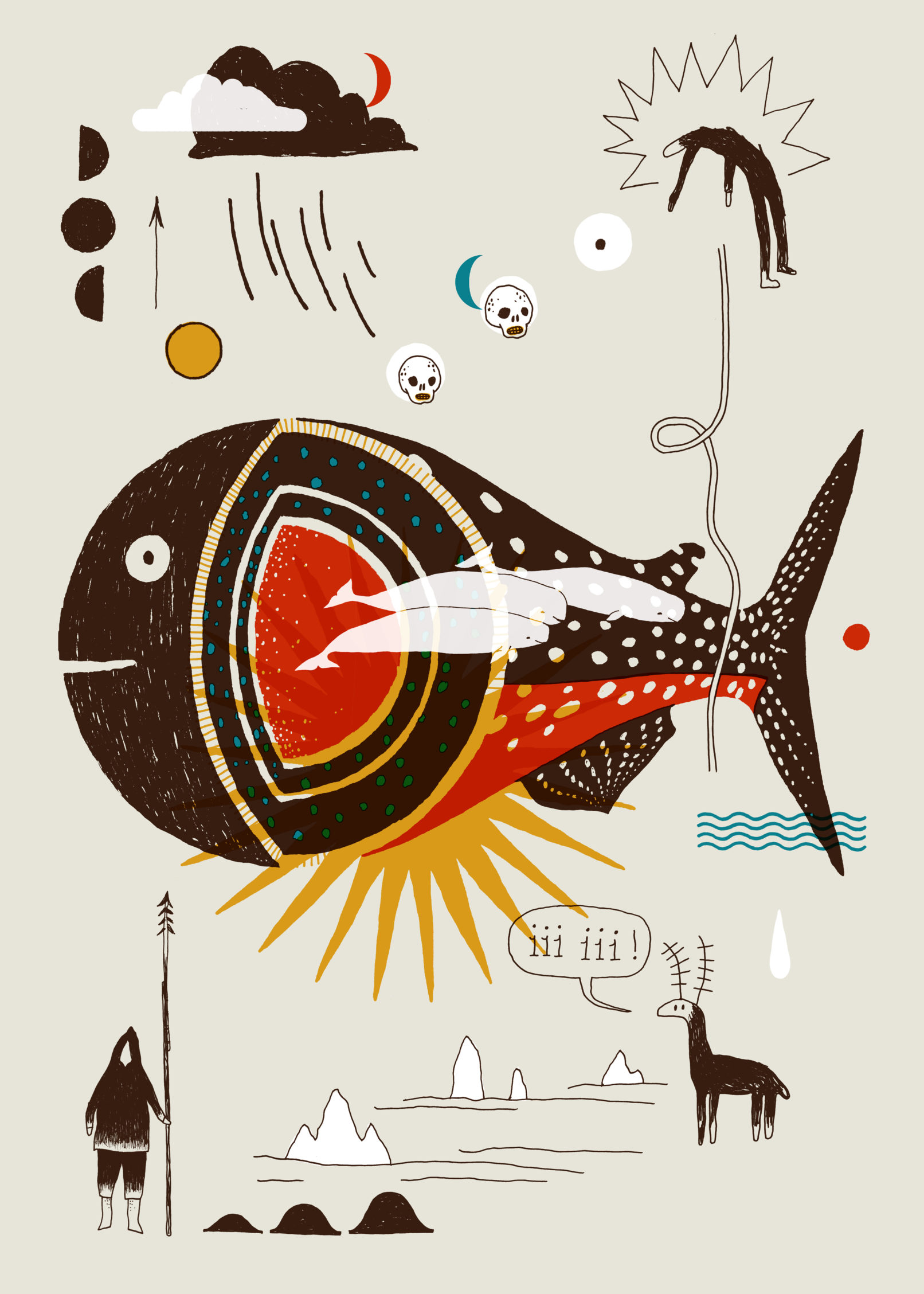 « Les Inuit sont un peuple de chasseurs nomades se déployant dans l’Arctique depuis un millier d’années. Jusqu’à très récemment, ils n’avaient d’autres ressources à leur survie que les animaux qu’ils chassaient, les pierres laissées libres par la terre gelée, les plantes et les baies poussant au soleil de minuit. Ils partagent leur territoire immense avec nombre d’animaux plus ou moins migrateurs, mais aussi avec les esprits et les éléments. L’eau sous toutes ses formes est leur univers constant, le vent entre dans leurs oreilles et ressort de leurs gorges en souffles rauques. Pour toutes les occasions, ils ont des chants, qu’accompagne parfois le battement des tambours chamaniques. »