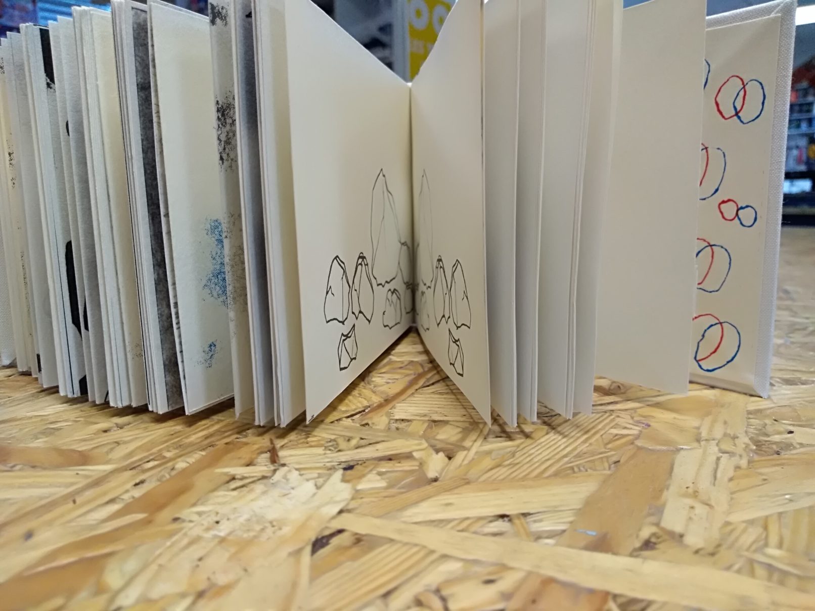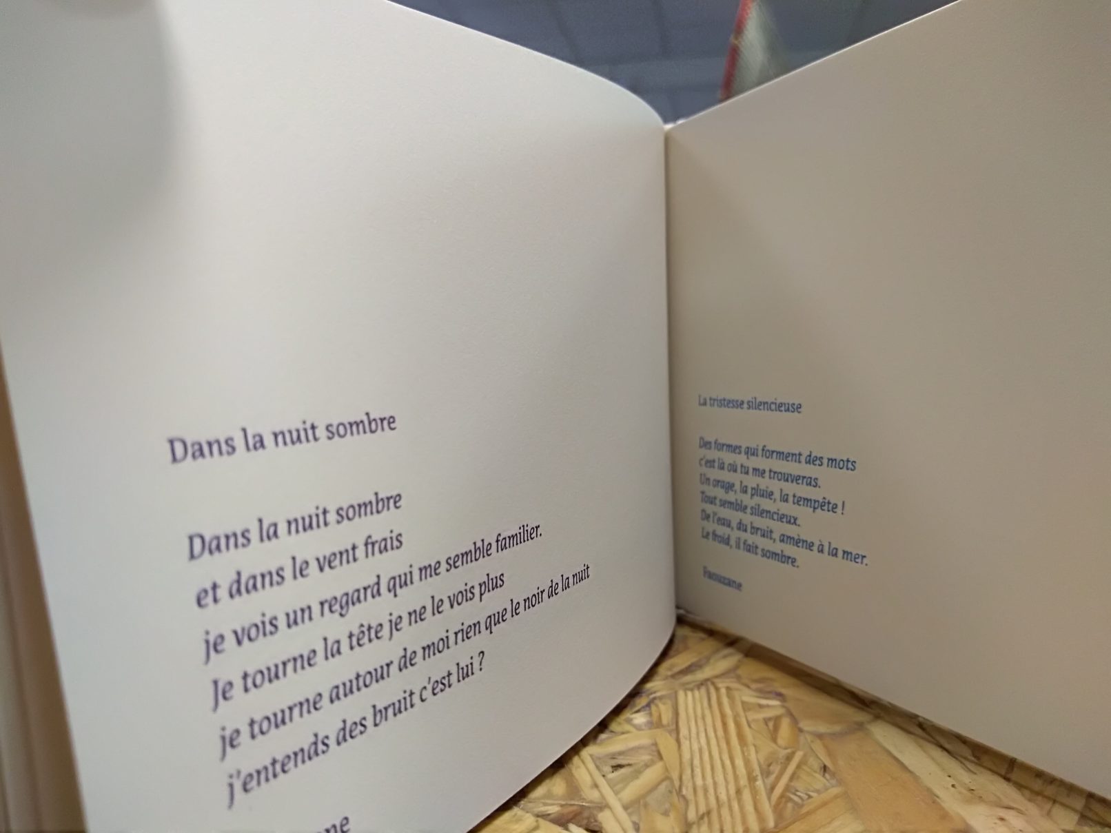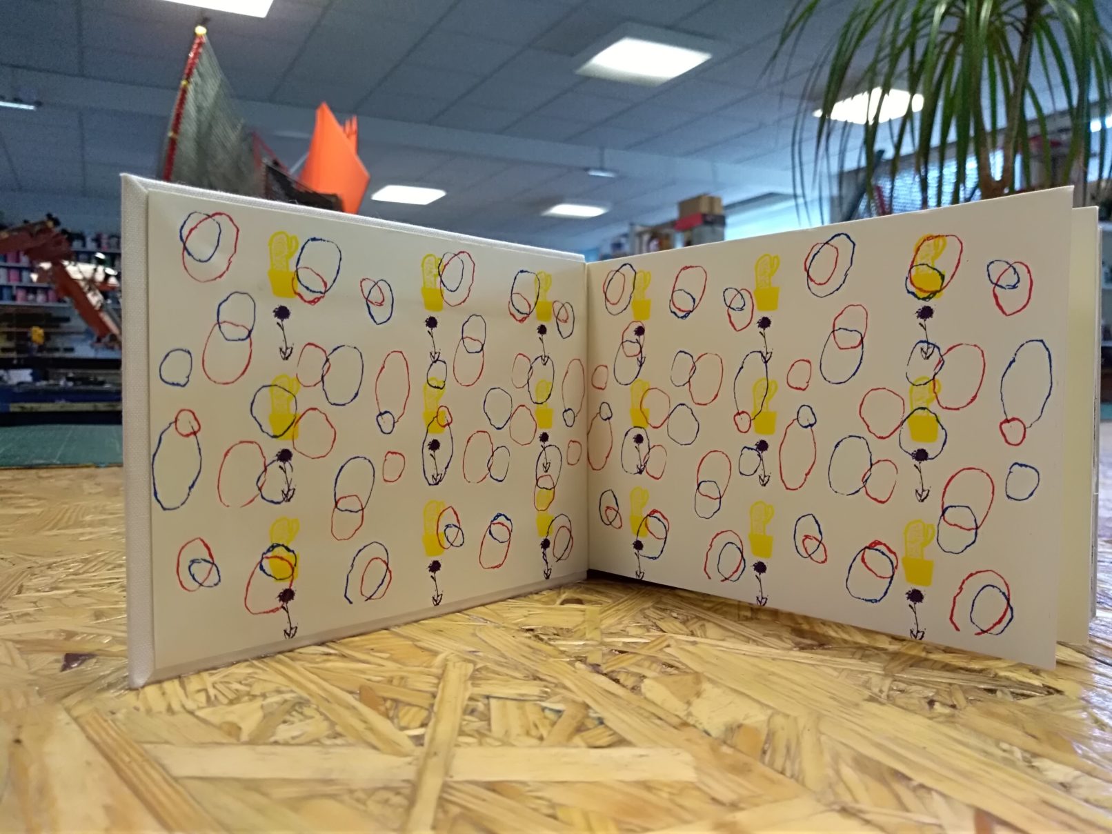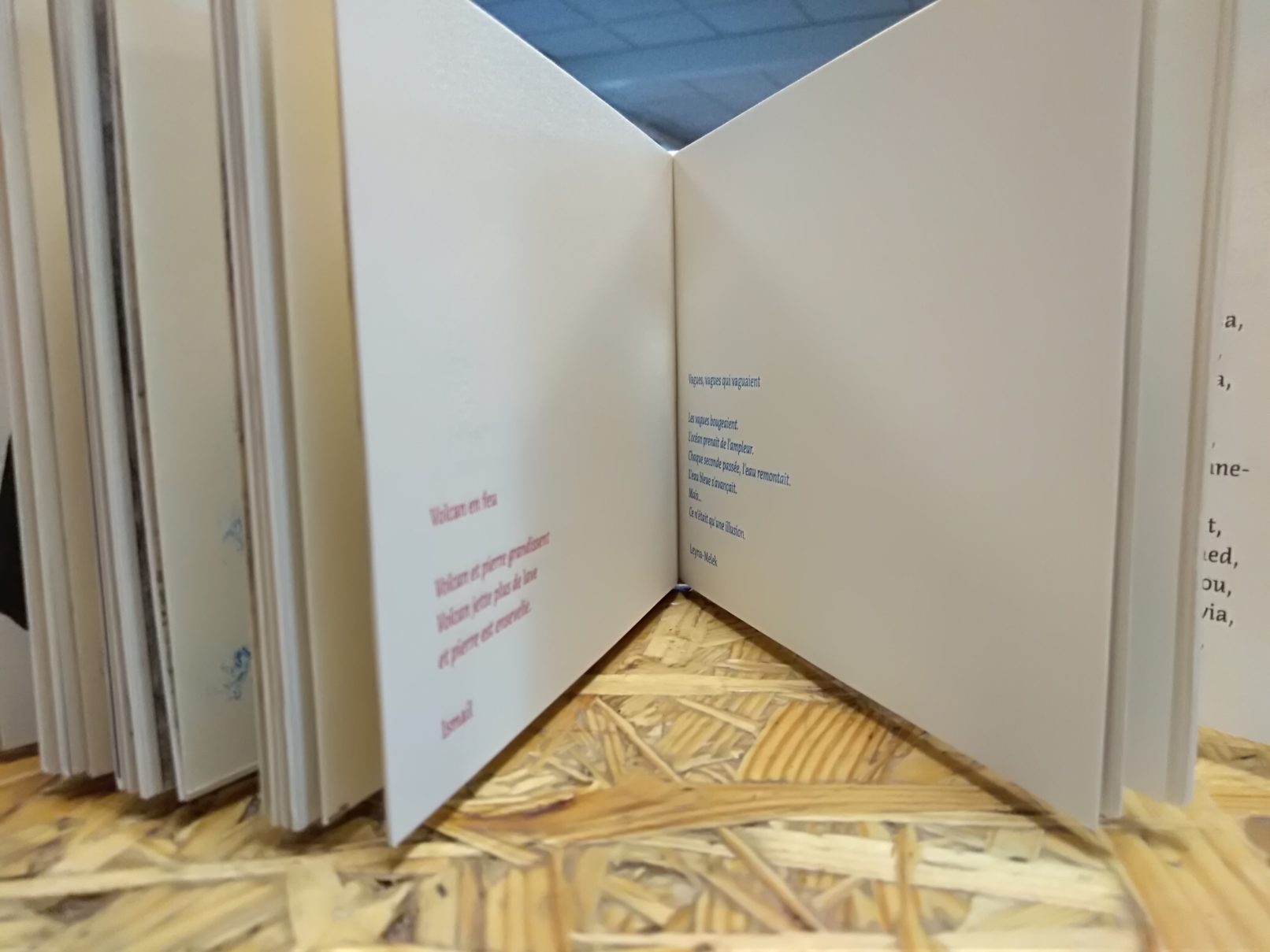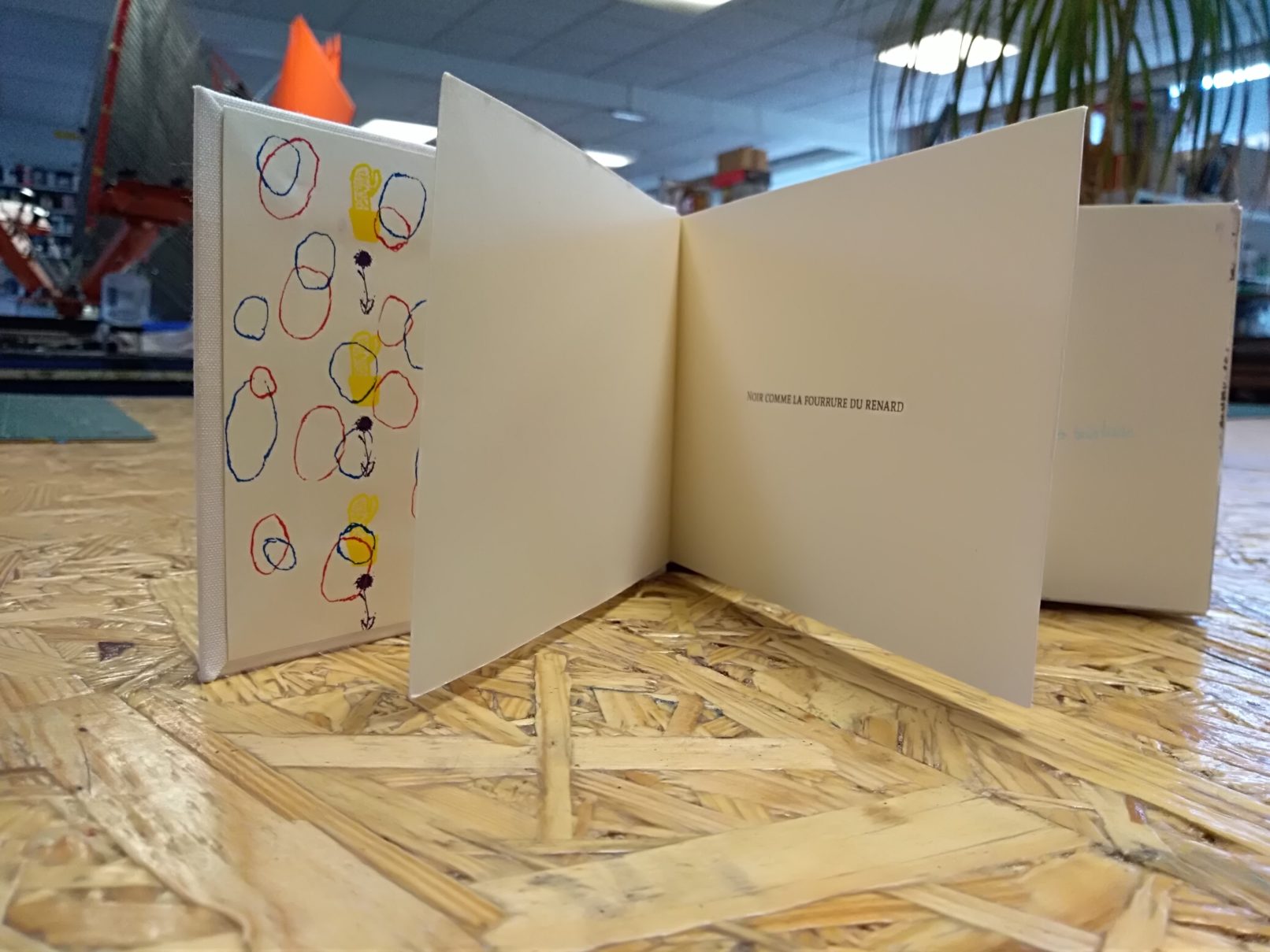 Tiré en 8 exemplaires en sérigraphie et numérique au Marché Noir (Rennes) et chez Identic (Cesson Sévigné), ils sont consultables à la bibliothèque de l’école Jacques Prévert, au Phakt et à l’atelier du Marché Noir.