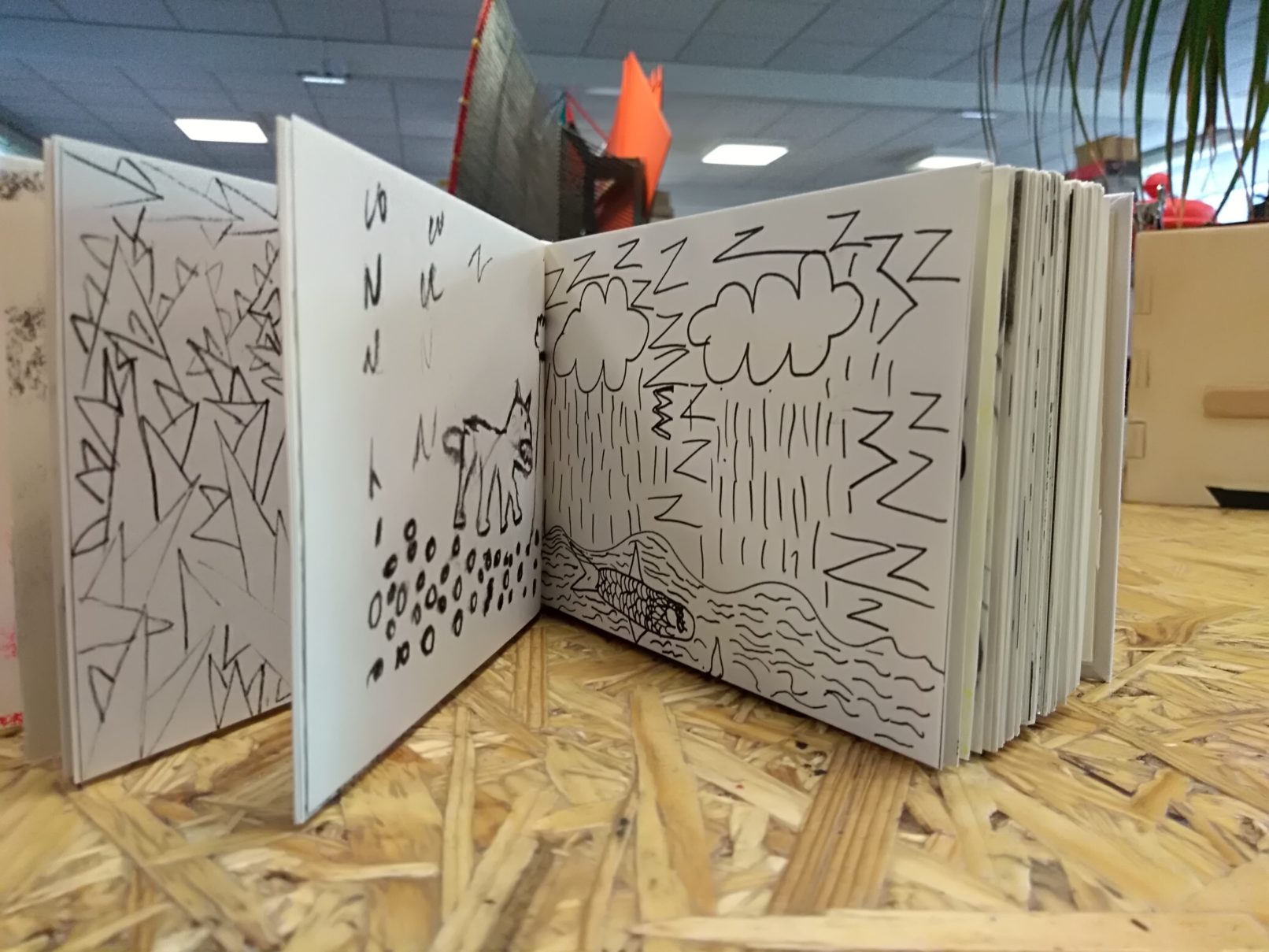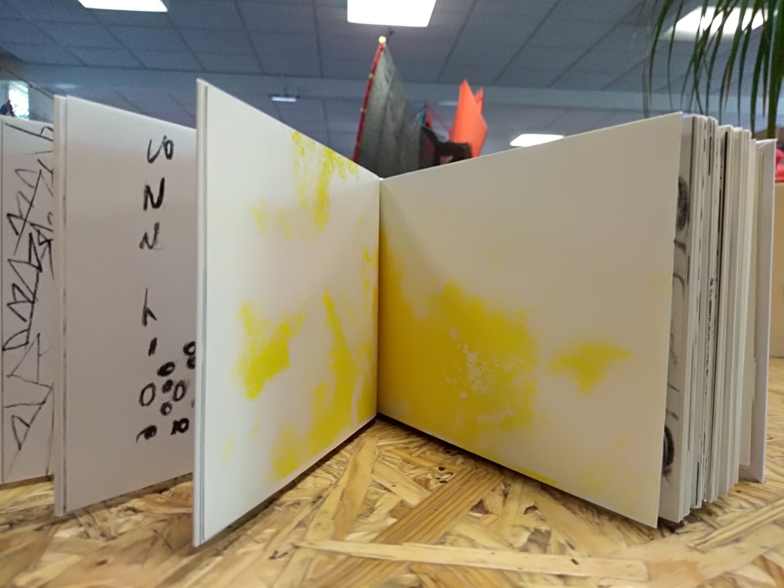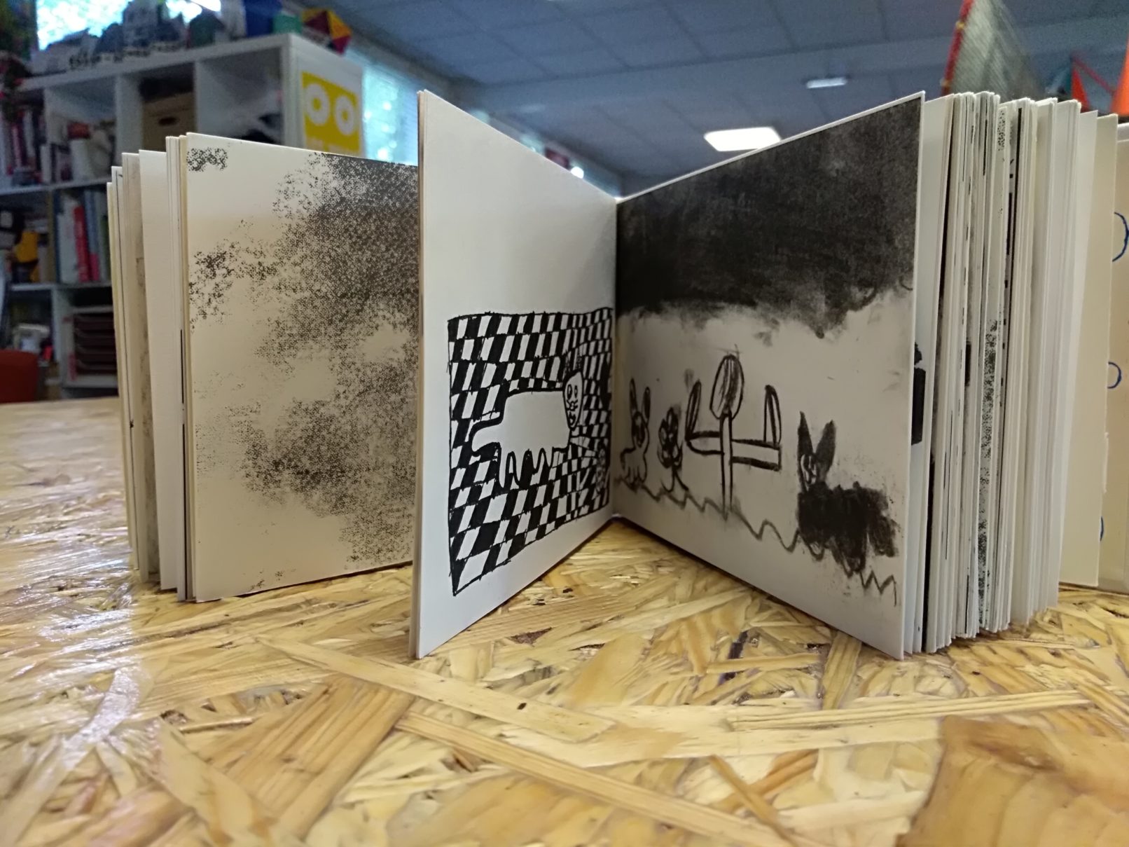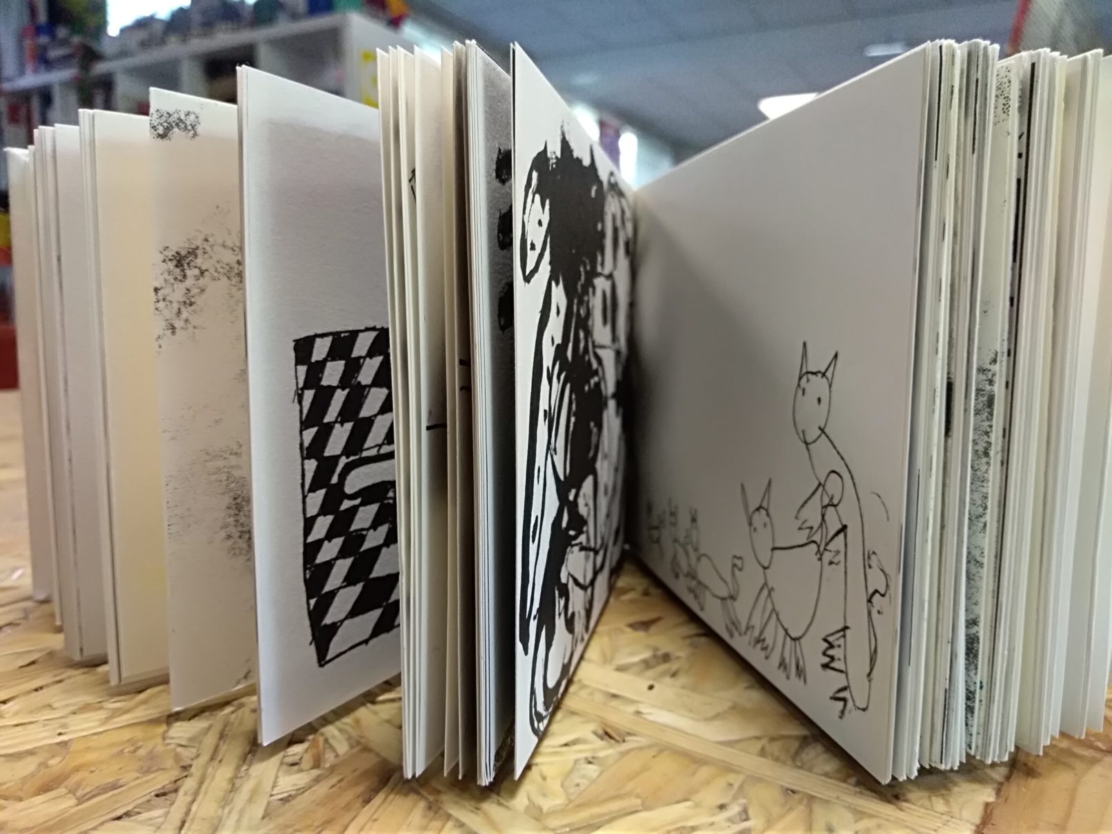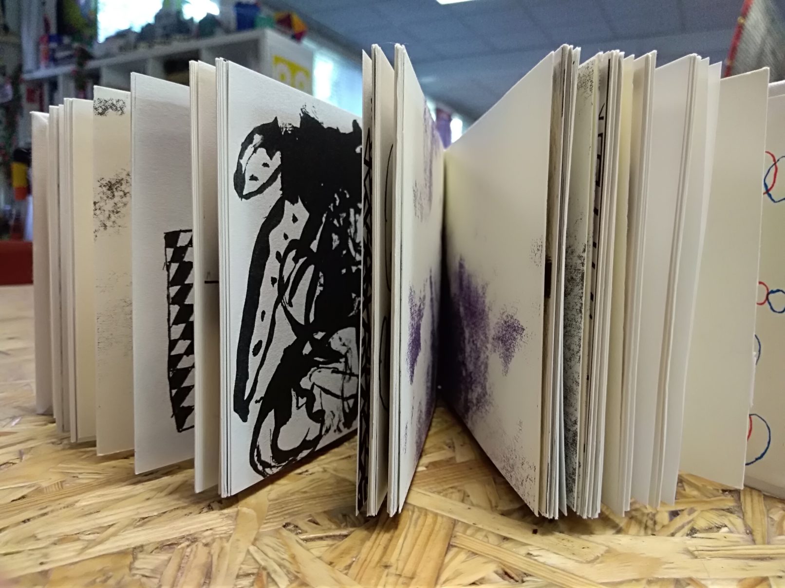Tiré en 8 exemplaires en sérigraphie et numérique au Marché Noir (Rennes) et chez Identic (Cesson Sévigné), ils sont consultables à la bibliothèque de l’école Jacques Prévert, au Phakt et à l’atelier du Marché Noir.