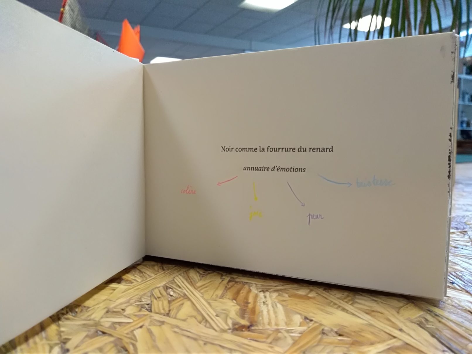 Ce livre conçu par des enfants âgés de 6 à 12 ans évoque les émotions, ou du moins 4 d’entre elle. Il contient 240 pages reliées à la main en cahier.