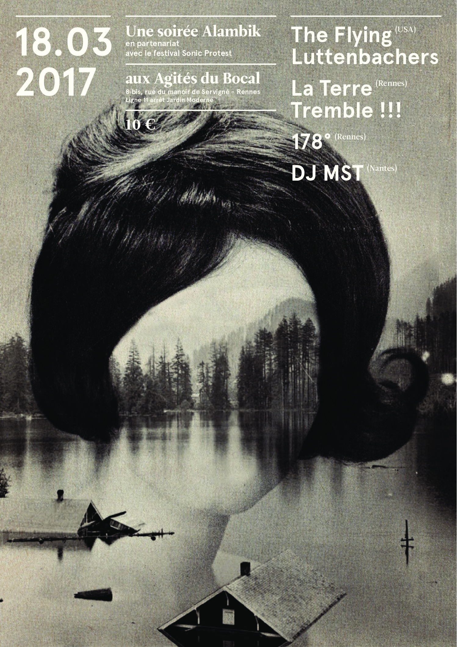 Affiche réalisée pour une soirée de concerts organisé par Alambik, 2017, Rennes. – Sérigraphie, deux passages Olin Smooth, 250g – Par Julien Lemière