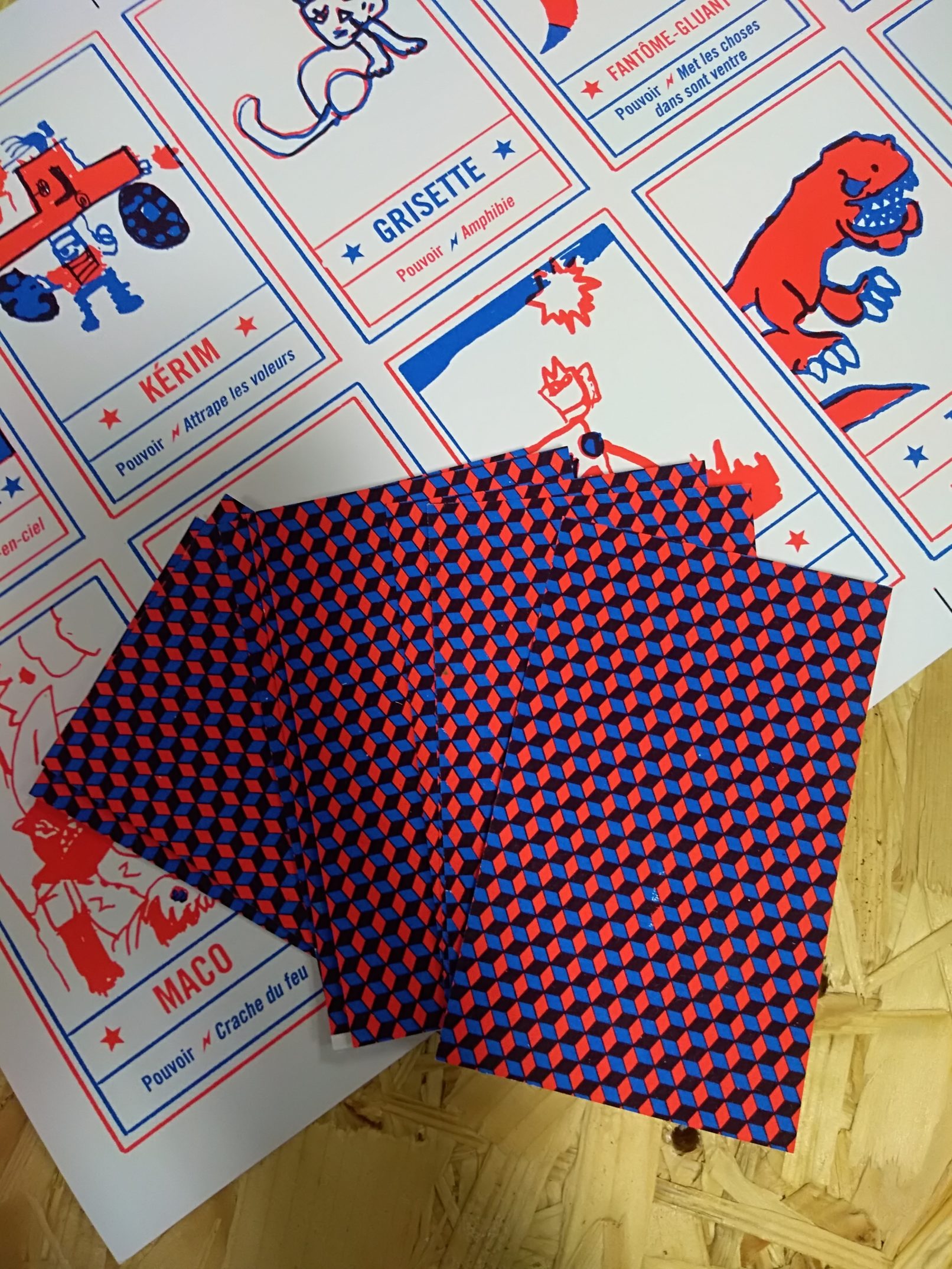 Jeu imprimé recto-verso et tiré en 30 exemplaires, en sérigraphie 2 couleurs.