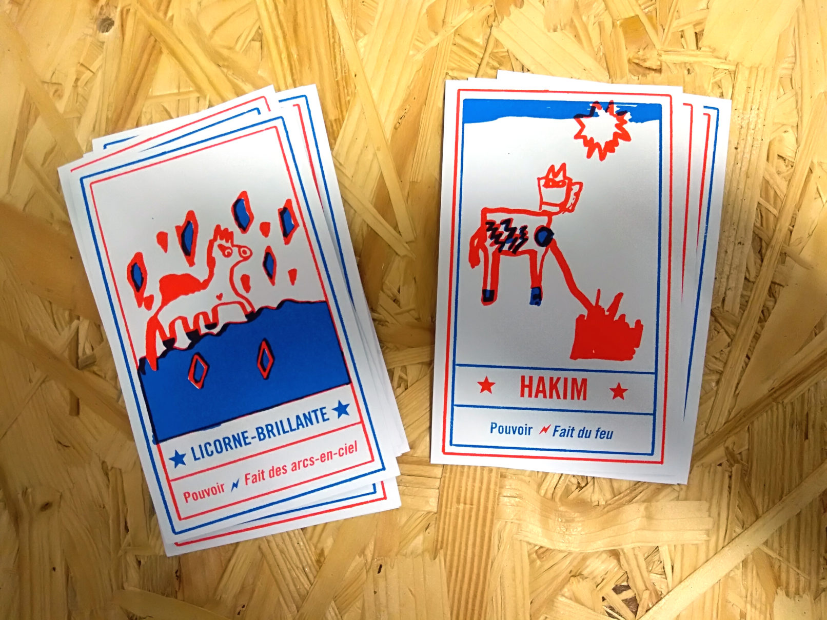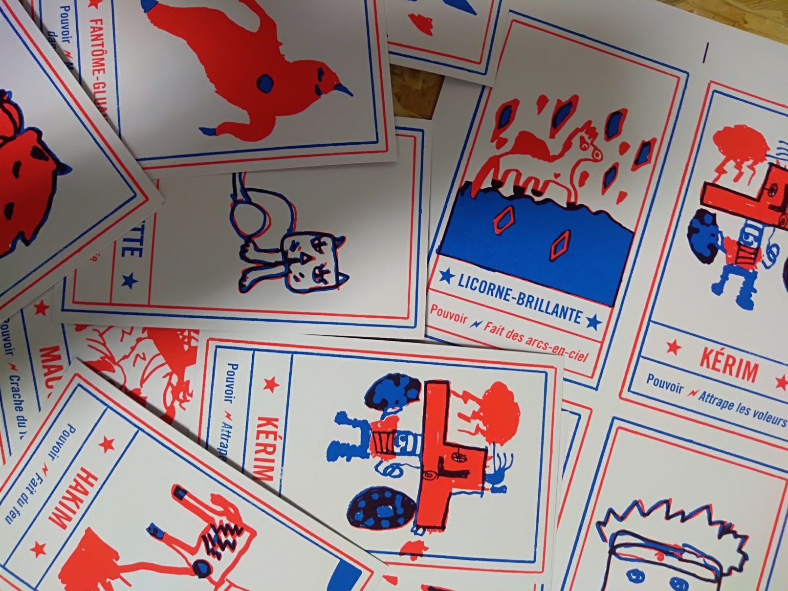 Série de 10 cartes de Super-Héros imaginée et imprimée avec les enfants du Cercle Paul Bert de Villejean Armagnac, dans le cadre de l’accompagnement à la scolarité.