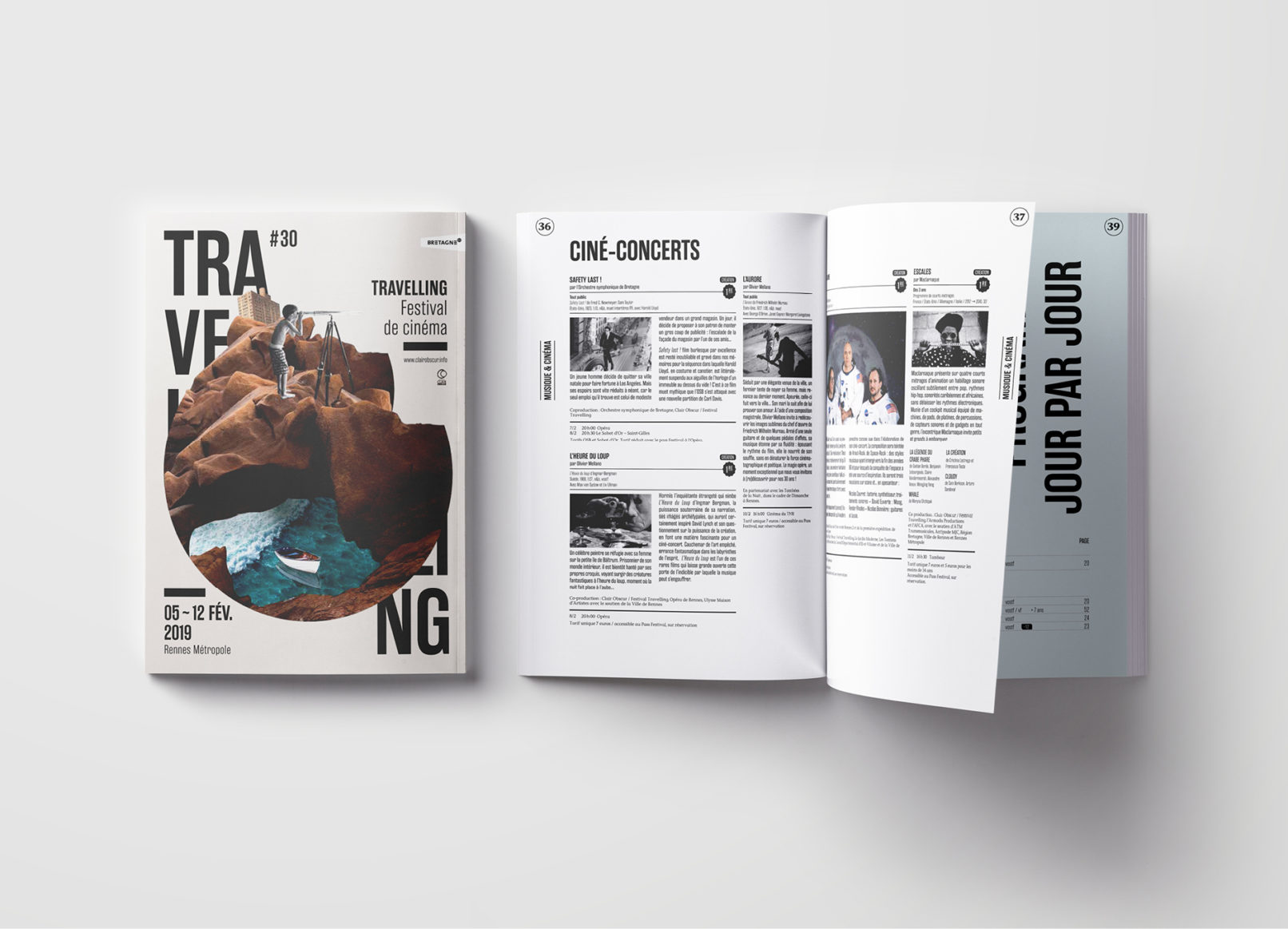 Visuel et déclinaisons pour le festival Travelling 2019 organisé par Clair Obscur, Rennes (35) :
