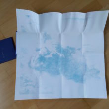 Couverture de différents bleus ou grise imprimée en sérigraphie 1 couleur. Pages intérieures : sérigraphie recto-verso, texte 1 couleur et image 1 couleur (nuages de gris différents ou bleu)